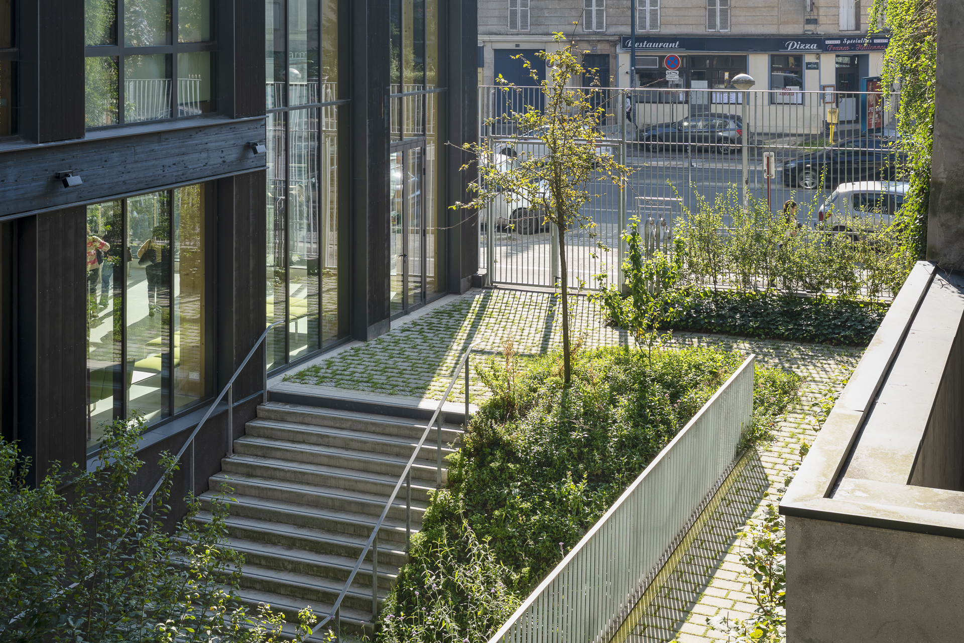 Photographies des espaces paysagers de la Grenoble École de Management à Pantin (93).